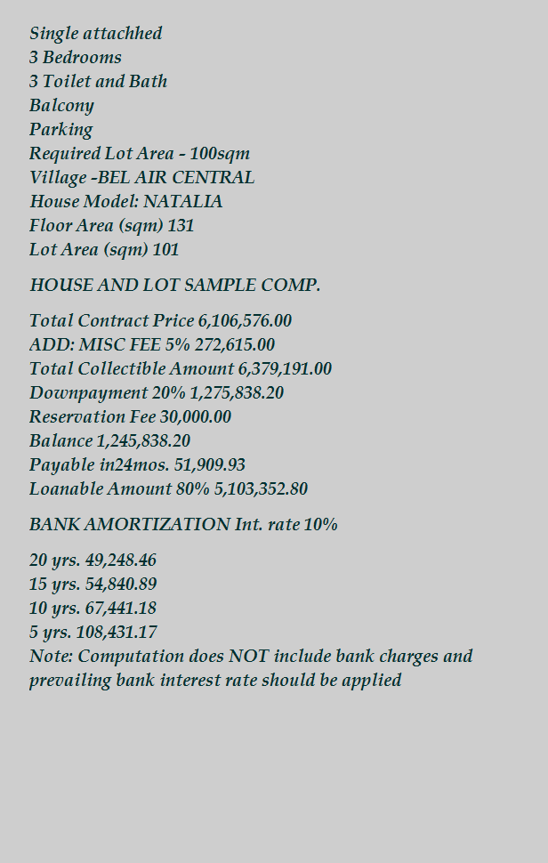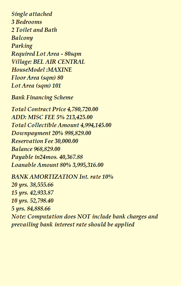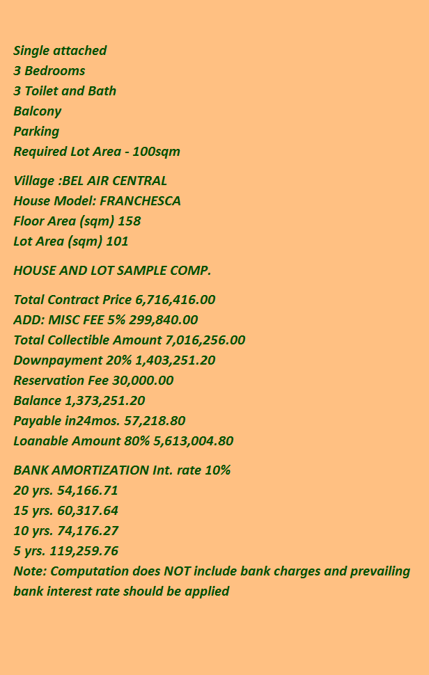 Single Attached House Floor area 158 sqm Lot area 120 sqm minimum 3 Bedroom 3 Toilet and bath
